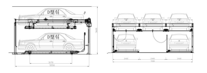 兩層升降橫移類產(chǎn)品由于其結(jié)構(gòu)簡單、合理、安全,操作簡便,易于維護(hù);產(chǎn)品布局靈活、組合方便,對場地適應(yīng)性好,且造價不高。充分利用空間,數(shù)倍提高停車數(shù)量;根據(jù)客戶場地規(guī)劃,設(shè)計(jì)為兩層,設(shè)備凈高大于3600mm,存取車操作簡便,可根據(jù)客戶管理需要,采取按鈕式、刷卡式、觸摸屏式多種存取方式。